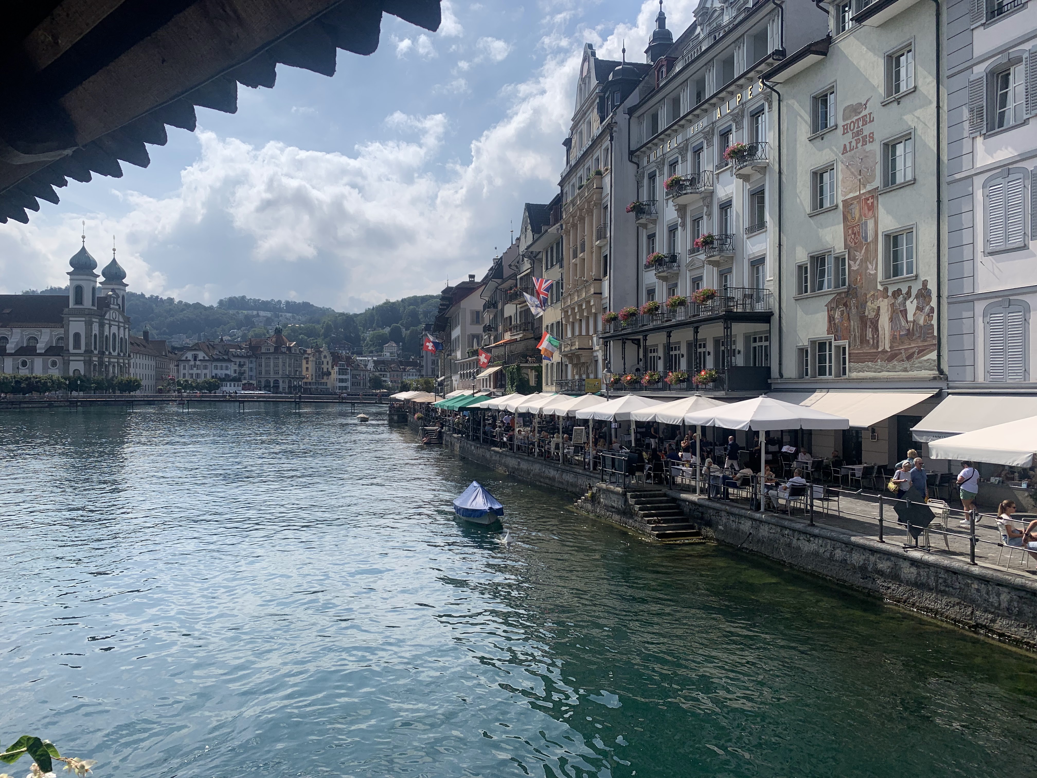 We stayed at the Astoria Hotel in Lucerne, Switzerland. We walked around Lucerne and found a local restaurant.